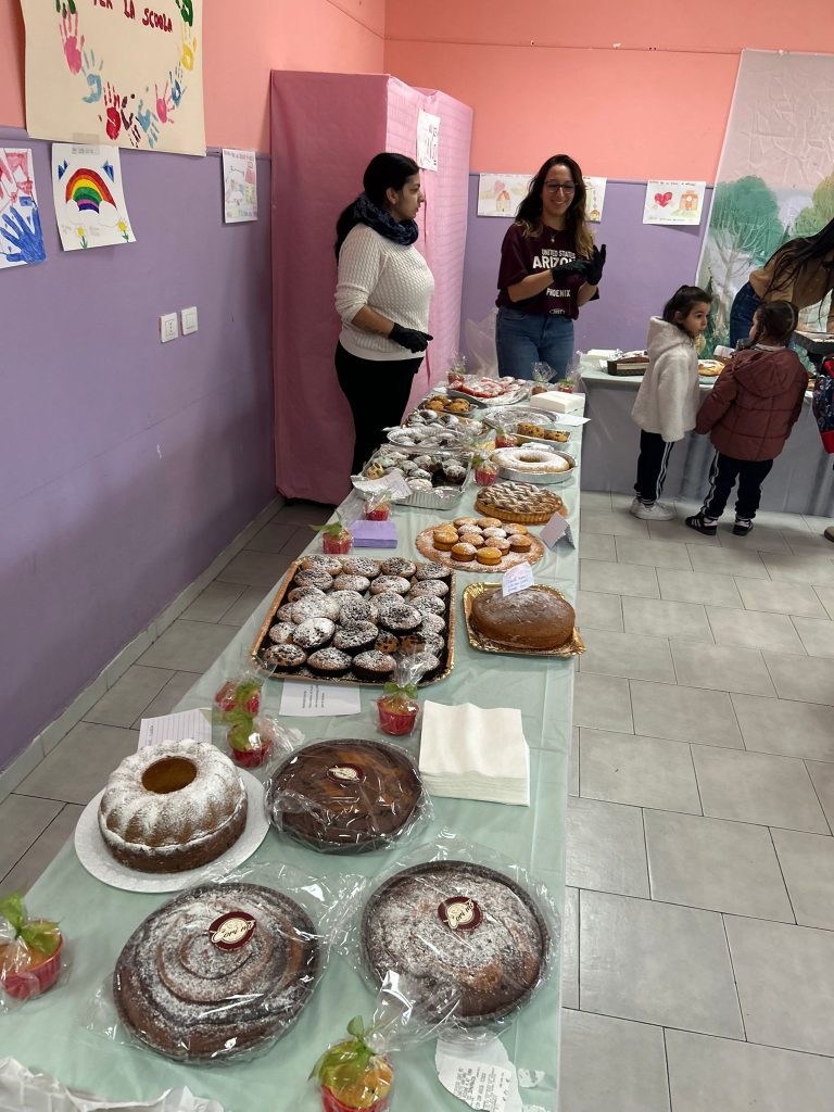 Torte fatte in casa, biscotti, muffin e crostate: ogni dolce venduto ha rappresentato un piccolo ma fondamentale tassello per la ricostruzione e il sostegno delle scuole di Niscemi. Vedere i nostri ragazzi impegnarsi in prima linea nella vendita e nella promozione dell’evento è stata la testimonianza più bella del valore educativo di questa iniziativa.